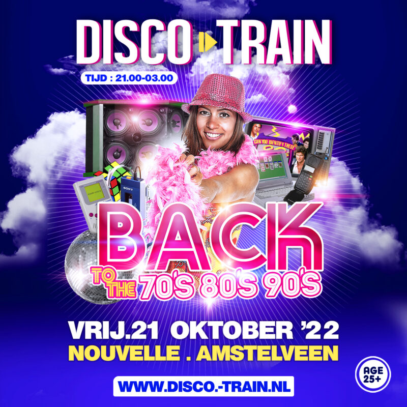 | Elke 3e vrijdag tref je de Disco-Train in Club Nouvelle met muziek uit de jaren ’70, ’80 en ’90, uit de tijd van AVRO’s Top-Pop en Veronica’s Countdown. De beste DJ’s draaien die discokrakers waarop je niet stil kunt blijven staan. Maar ook de enorm in opkomst is de muziekstijl "Nu Disco", waarbij nummers van toen gedraaid worden in een modern jasje. Gratis hapjes Gratis warm buffet Gratis parkeren Gratis toiletten & garderobe |