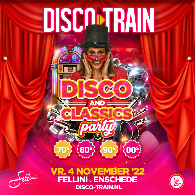 Ná talloze succesvolle en uitverkochte feesten komt Disco-Train met de Disco & Classics Party naar Fellini in Enschede voor een avond Disco & Party & Fun