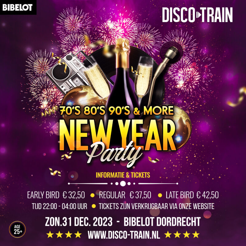 Disco-Train organiseert dé Leukste, Vetste, Mooiste en Meest Sfeervolle New Year Party ooit. Een spetterend Oud en Nieuw Feest, NU ook in Dordrecht, voor de 21-plusser.