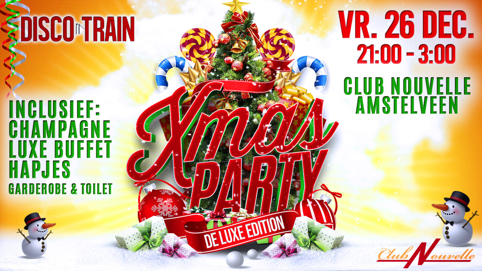 Stap aan boord van de Disco-Train X-Mas Party bij Club Nouvelle in Amstelveen op 2e Kerstdag!